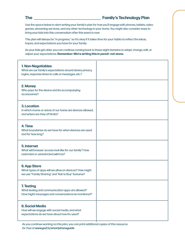To help you start the conversation, we’ve created a free printable PDF that will help your family create an individualized technology plan.